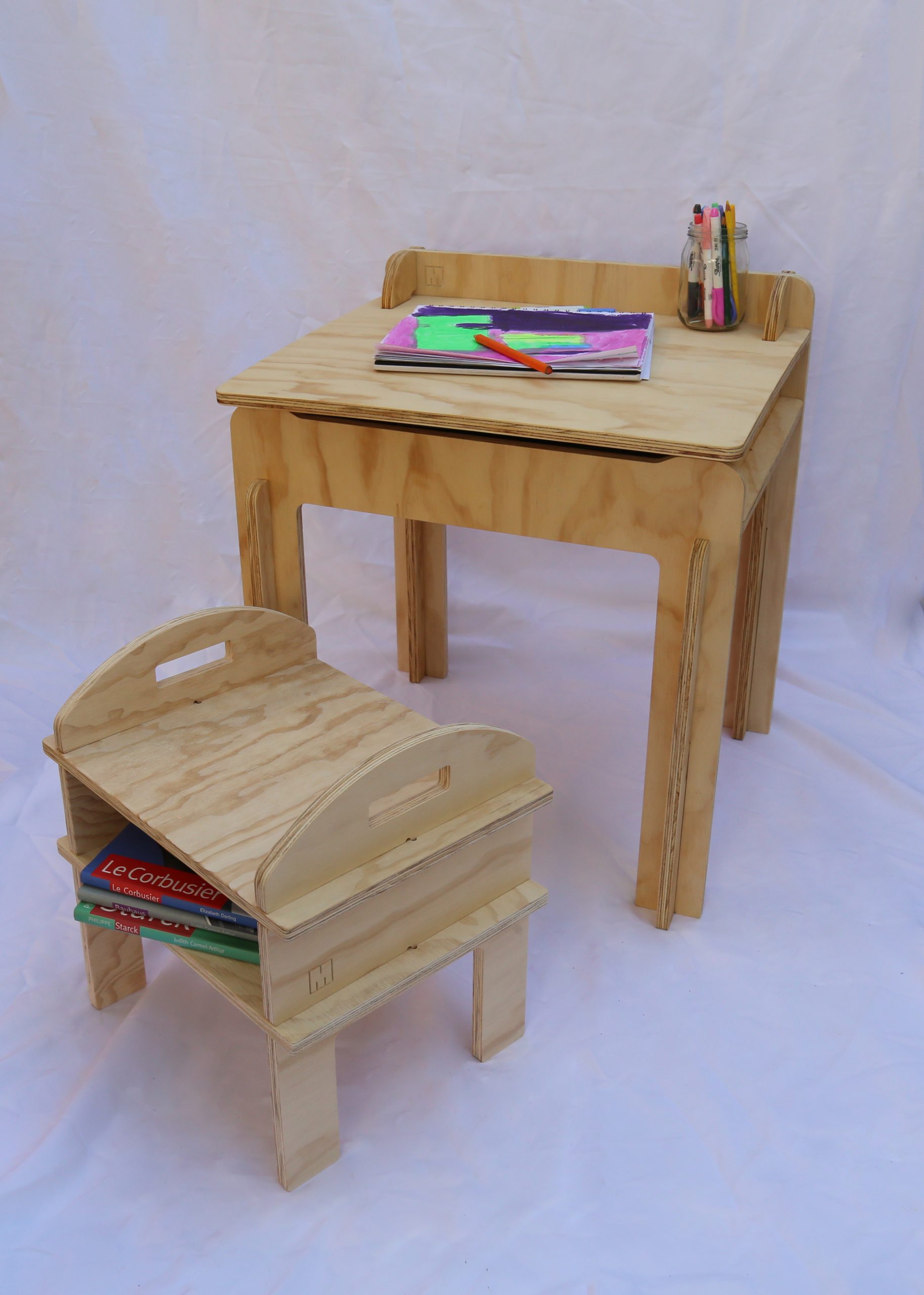 Inspirado en el metodo Montessori, de material noble, para niños desde los 4 años. Con una tapa superior abatible que abre espacio para guardar sus pinturas, lápices y cuadernos. Su armado no requiere tornillos ni herramientas extras, cuando ya no lo necesites será muy facil guardarlo. Fabricado en contrachapado, con acabados en aceite-cera vegetales inocuos para el ser humano que realzan los tonos naturales de la madera.